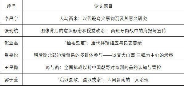 经学生自愿申报,学院组织专业教师评审,拟推荐以上六篇论文参加“史学新秀”评奖,特此公示。时间:4月18日-20日。如有问题,请联系教学办。