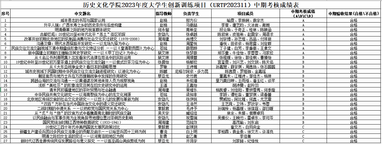 2023年大学生创新训练项目中期考核成绩公布