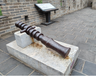 下午,我们来到居庸关长城继续考察。居庸关是京北长城沿线上的著名古关城,为北京西北的门户,也是“天下九塞”之一。居庸关形势险要,现存的关城是明太祖朱元璋派遣大将军徐达督建,坡陡而急,攀爬极为费力。居庸关两旁山势雄奇,中间有长达18公里的溪谷,溪水清澈,层峰叠嶂,树木葱茏,山鸟争鸣。居庸关拥有南北月城及城楼、敌楼等配套设施,关城内外还有衙署、庙宇、儒学等各种相关建筑设施,我们所考察的北关瓮城之中便有供奉着真武大帝的真武庙。北关瓮城的城墙之上分别陈列5门古炮,名“神威大将军”,有照门和准星用于瞄准,射程可达500多米。