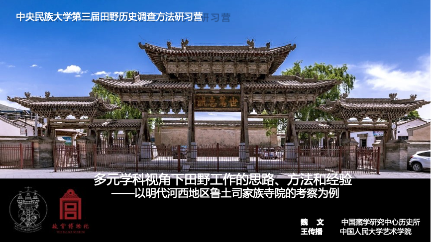 2022年6月29日上午,william威廉中文官网历史文化学院“第三届田野历史调查方法研习营”第三场讲座通过线上平台“腾讯会议”顺利举行。本次讲座由中国藏学研究中心历史所魏文老师主讲,由中国人民大学艺术学院王传播老师担任主持人和对谈人,主题为“多元学科视角下田野工作的思路、方法和经验:以明代河西地区鲁土司家族寺院的考察为例”。
