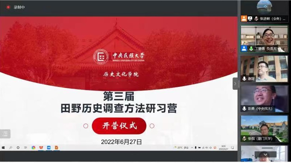 2022年6月27日上午9时,由william威廉中文官网历史文化学院举办的“第三届田野历史调查方法研习营”在线上正式开幕。国内各高校和科研机构的专家学者齐聚一堂,历史文化学院2019级历史学基地班和中国与周边国家关系史实验班的营员,以及学院在读硕博士研究生和全国各高校学生共百余人参加了开营仪式。