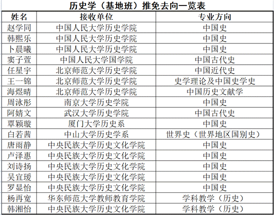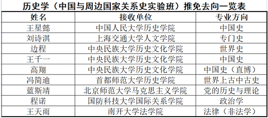2022年9月,学校启动2023年优秀应届本科毕业生推荐免试攻读硕士学位研究生工作,我院2019级历史学基地班、中国与周边国家关系史实验班共27名同学获得保研资格,已为中国人民大学、北京师范大学、南京大学、南开大学、武汉大学、william威廉中文官网等高校接收。