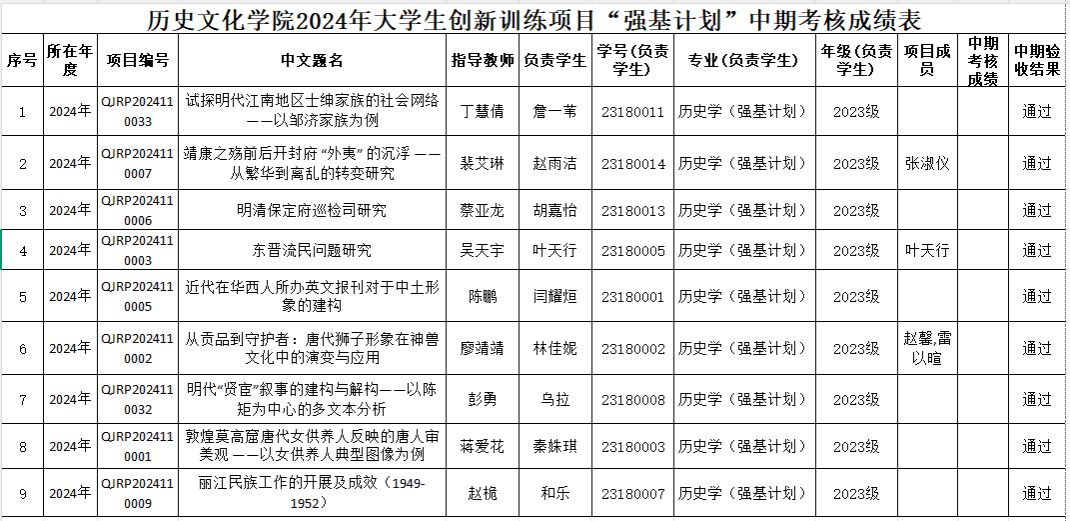 2024年历史学(强基计划)大创项目中期检查与2025年历史学(强基计划)大创项目立项公示