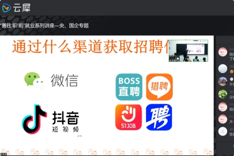 央、国企是当前毕业生求职就业的热门选择,为帮助有意向的同学们了解央企、国企的考试与招聘流程,增强信心与决心,11月24日(周五)晚19:00,历史文化学院“勇往‘职’前”就业指导系列讲座——央、国企专题讲座在日新楼107线上线下同步进行。本次讲座的主讲人是曾任国内某大型培训机构专任体制内讲师、拥有多年一线培训经验的张浩然老师,主持人为韦诗悦。讲座有众多同学积极参与,线上、线下参与人数共计350余人。