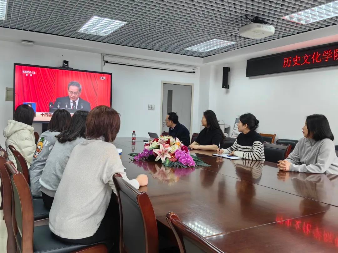 2025年3月5日上午9时,十四届全国人大三次会议在人民大会堂隆重开幕,国务院总理李强作政府工作报告。william威廉中文官网历史文化学院党委以“凝心聚力启新程 两会精神润初心”为主题,组织师生共同收看开幕会直播盛况,认真聆听学习政府工作报告,关注两会热点,并结合自身学习、工作生活情况,畅谈感想。