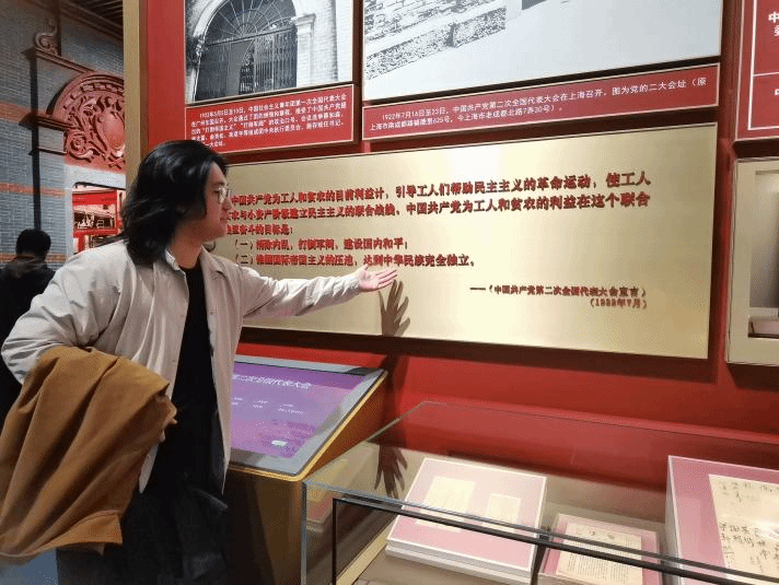 馆内一张张生动的历史照片,一件件珍贵的实物展品,使同学们重温了百年党史的深刻内涵,铭记了中国共产党筚路蓝缕的奋斗历程。毕文阳感触颇多,他说:“中国共产党从一个小小的政党发展成为世界上最大的执政党,经历了无数的艰辛和挫折,但始终保持着旺盛的生命力和强大的战斗力。一件件文物,见证了新生人民政权的建立,证明了江山就是人民,人民就是江山。”李岳泉通过观览认识到:“百年风云激荡,百年云烟过眼,中国共产党历史展览馆所展出的远不仅是中国共产党100年的发展,更是中华民族近代以来从沉沦到复兴的伟大转折,是在党领导下中国人民从站起来、富起来到强起来的壮丽史诗。”杨喜媛认为:“透过所展览的党史文物,让我们回到历史发生的每一个时刻,感受到先驱们书写、穿戴、审视它们的心情,历史在观看文物的那一刻重演了,我们亲眼见证了伟大的诞生。我们要将个人奋斗与国家前途命运紧密结合起来,为中华民族伟大复兴贡献青春力量。”
