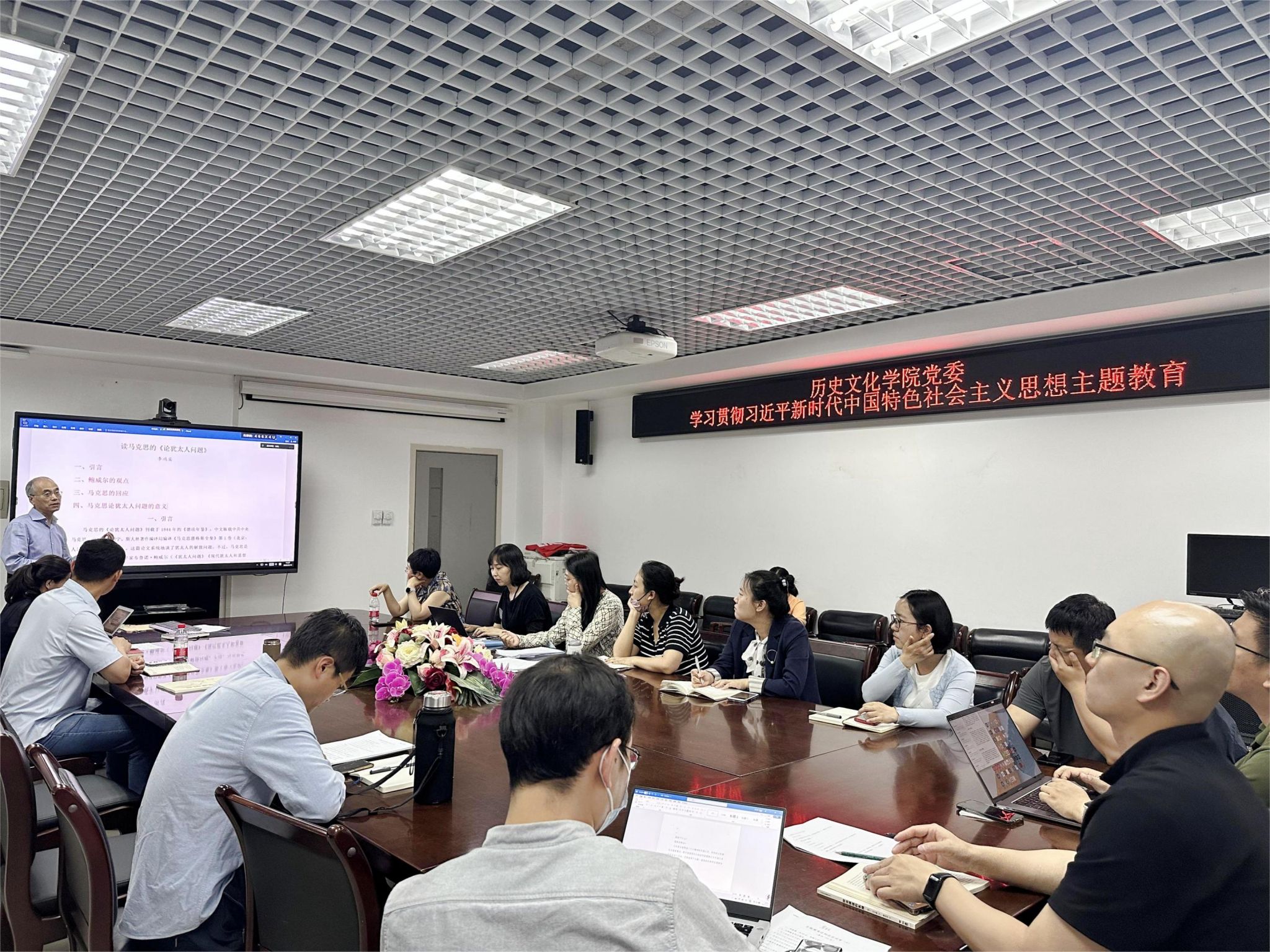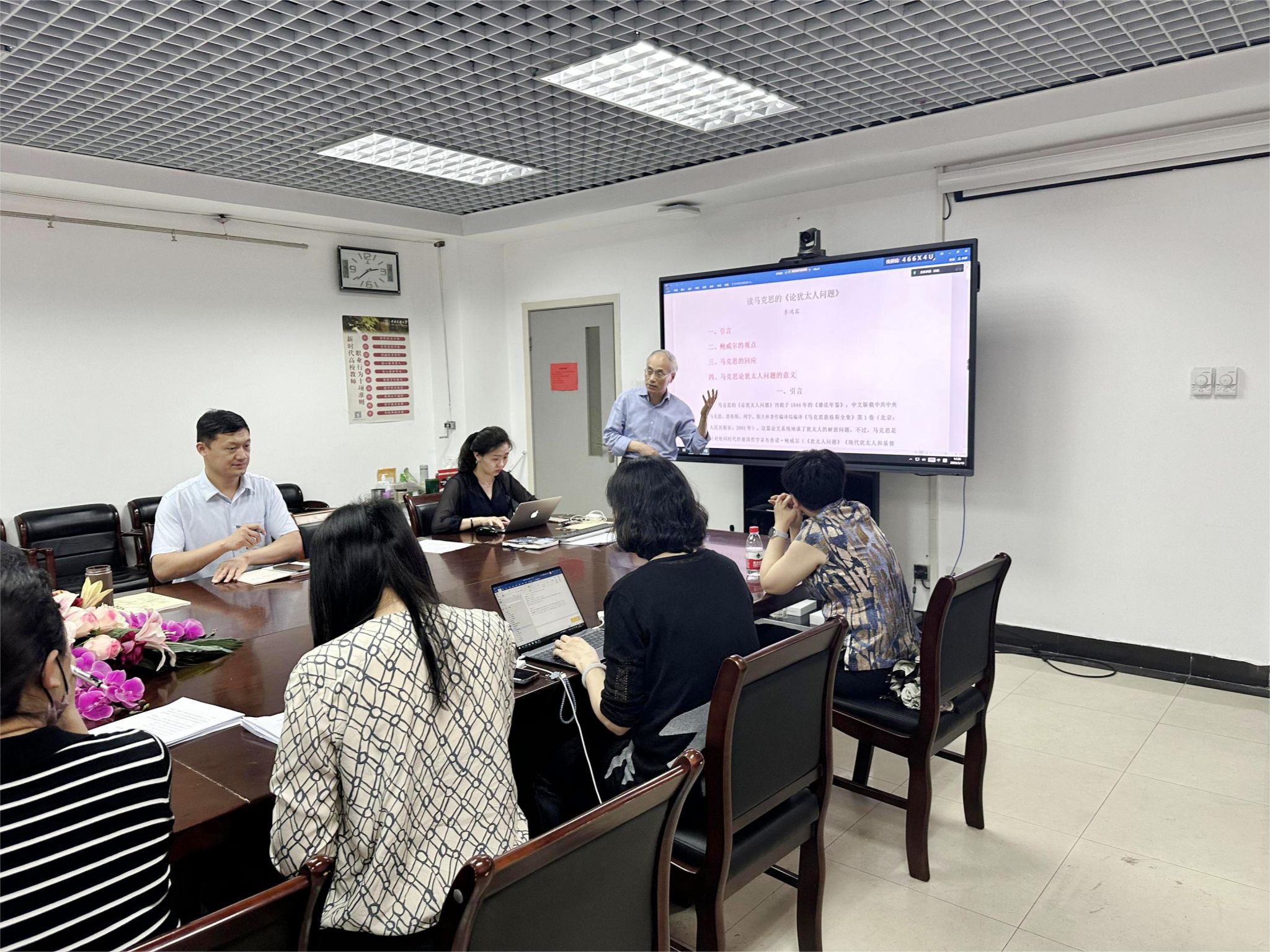 5月19日下午15时,历史文化学院党委开展学习贯彻习近平新时代中国特色社会主义思想主题教育暨第二届“杰出育人奖”获奖教师宣讲活动,我院“杰出育人奖”获奖者李鸿宾教授作《提升高校教师的理论素养——以我阅读马克思“论犹太人问题”一文为例》的主题演讲。校党委教师工作部、人事处副处长刘莹到会指导,历史文化学院全体教职工参与学习讨论,会议由学院党委办公室、学院办公室主任赵逸妍老师主持。