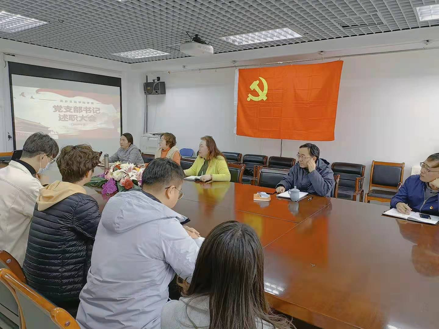 首先,刘翠兰书记进行了会议致辞,她认为述职会议对学院党建工作很有意义,希望各党支部能通过这次会议互相学习、共同进步。随后,历史文化学院教工党支部书记胡晔老师、18级研究生党支部刘维栋同志、19级研究生党支部陈逸飞同志、20级研究生党支部李天庆同志、本科生党支部书记赵逸妍老师先后进行述职,各支部书记均介绍了本支部的发展状况,并从党员发展、理论学习、党建工作等多个方面作了汇报,同时反思了支部存在的问题与缺点,并积极探讨改进工作方式,探索新的学习模式。