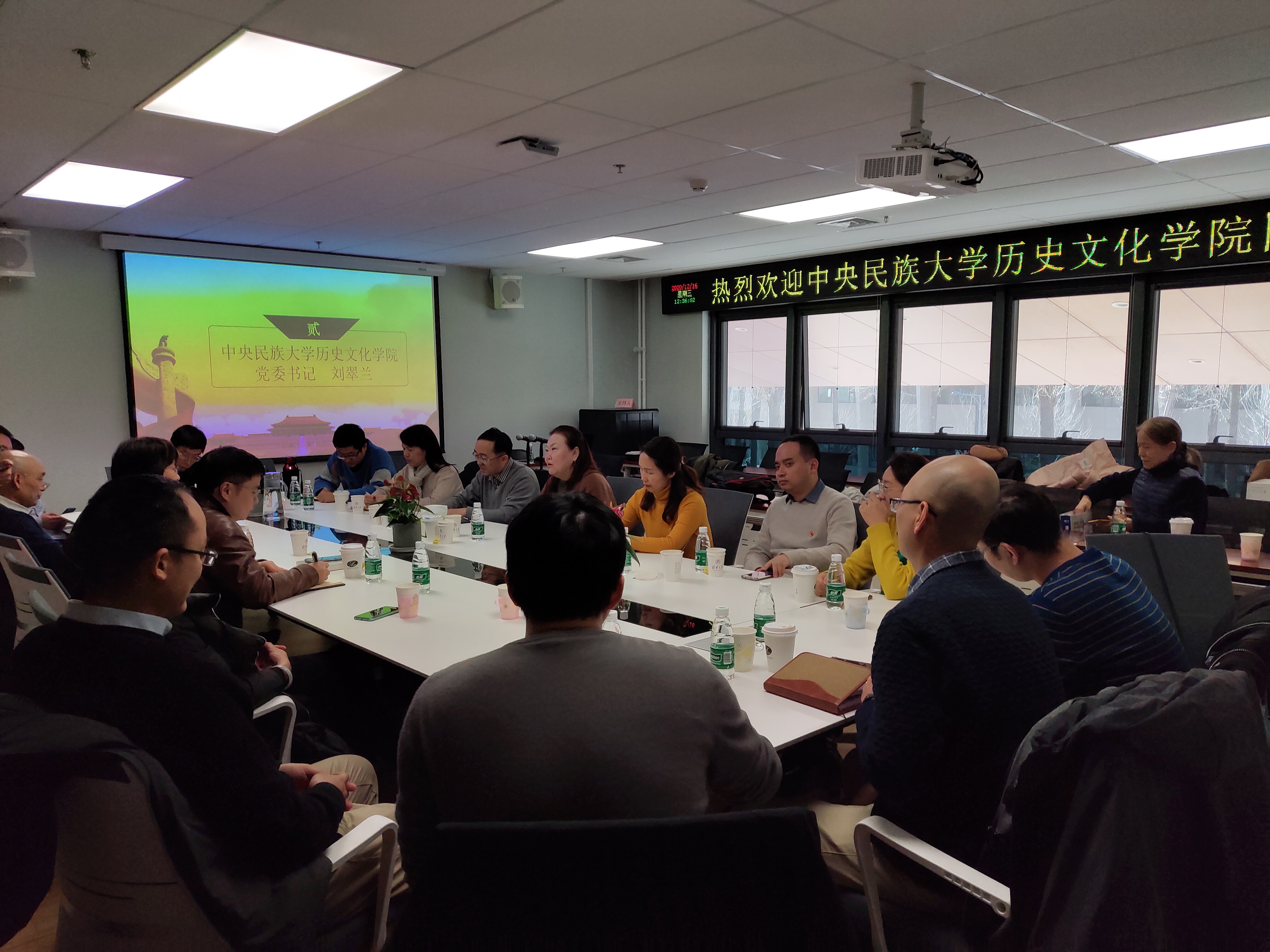 历史文化学院党委书记刘翠兰首先发言,她回顾了学院班子成员重视支部建设的传统,并梳理了我院党建工作的特点和经验。一是抓牢教师思政工作,发挥党员骨干教师的引领作用,带动党员新教师参与学工和党务工作;二是发挥教师示范作用,推进育人工作,学生升学深造率、选调生人数均十分理想;三是注重社会服务,探索公共史学的发展,以蒙曼、蒋爱花等为代表的党员教师在普及大众史学上效果明显;四是围绕国家民族团结政策,开展课程思政工作,借《中华民族史》等课程聚力铸牢中华民族共同体意识。