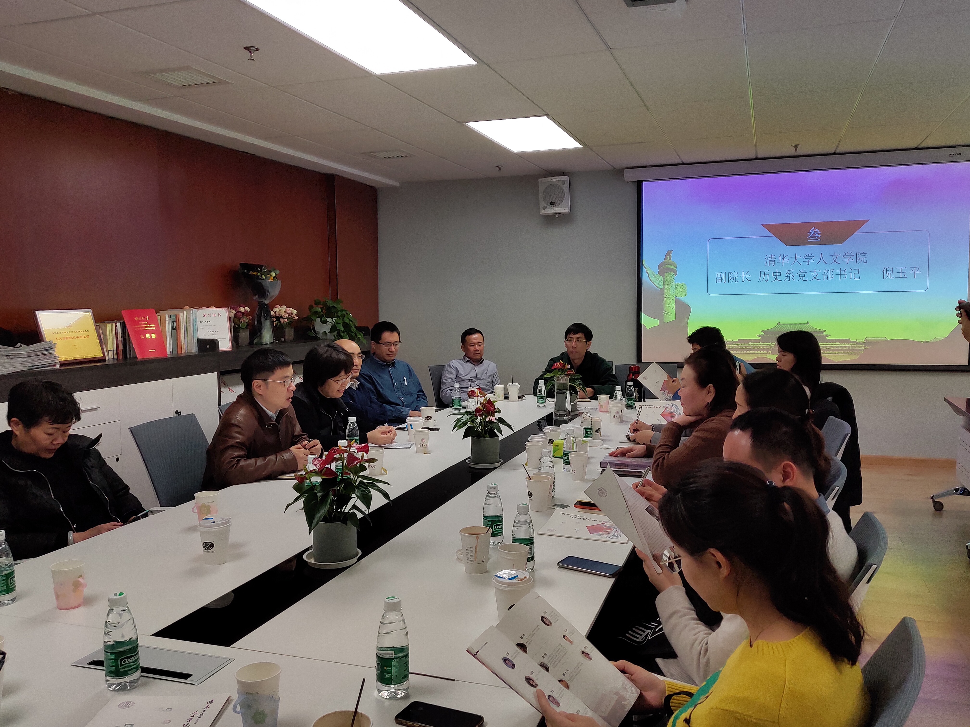 12月16日下午,历史文化学院党委及教工党支部一行十人赴清华园,与清华大学历史系围绕党建工作举行座谈交流。清华大学人文学院副院长、历史系党支部书记倪玉平主持会议,双方单位20余名党员教师参与了交流。