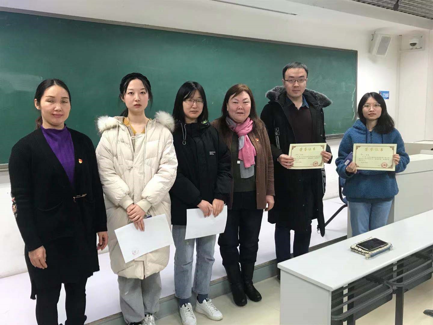 会议的最后,对第七期积极分子培训班的优秀学员进行表彰,刘翠兰书记和盛肖霞老师向优秀学员颁发了奖状和礼品并一起合影留念。