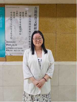 2024年6月13日晚19点,历史文化学院“史学名家系列讲座”第172期于文华楼1327室正式开讲。本次我院邀请到了河北大学宋史研究中心的张春兰教授,主讲题目为《古籍纸背文献研究的新进展:明代扬州府泰州宁海乡赋役黄册初探》。本次讲座由我院廖靖靖老师进行主持,采取线上、线下同步开展的形式。