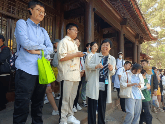 下午的参观地点是普陀宗乘之庙、须弥福寿之庙。普陀宗乘之庙又名小布达拉宫,是承德外八庙中规模最大的建筑群。普陀宗乘之庙见证了土尔扈特部回归等重大事件,是中华一统民族团结的历史见证,具有极高的民族、历史、艺术价值。它们对强基班师生了解、研究三交史有很大的启发意义。河北民族师范学院的许可老师带领我们沿着参观路线一路上山,寺庙的建筑有着鲜明的汉藏融合特色,宏伟的金顶让师生惊叹不已,纷纷合影留念。在参观途中,强基班学生一路欢声笑语,不时向老师提出问题,师生在实地考察的路途中热情交流探讨,学术讨论氛围浓厚。
