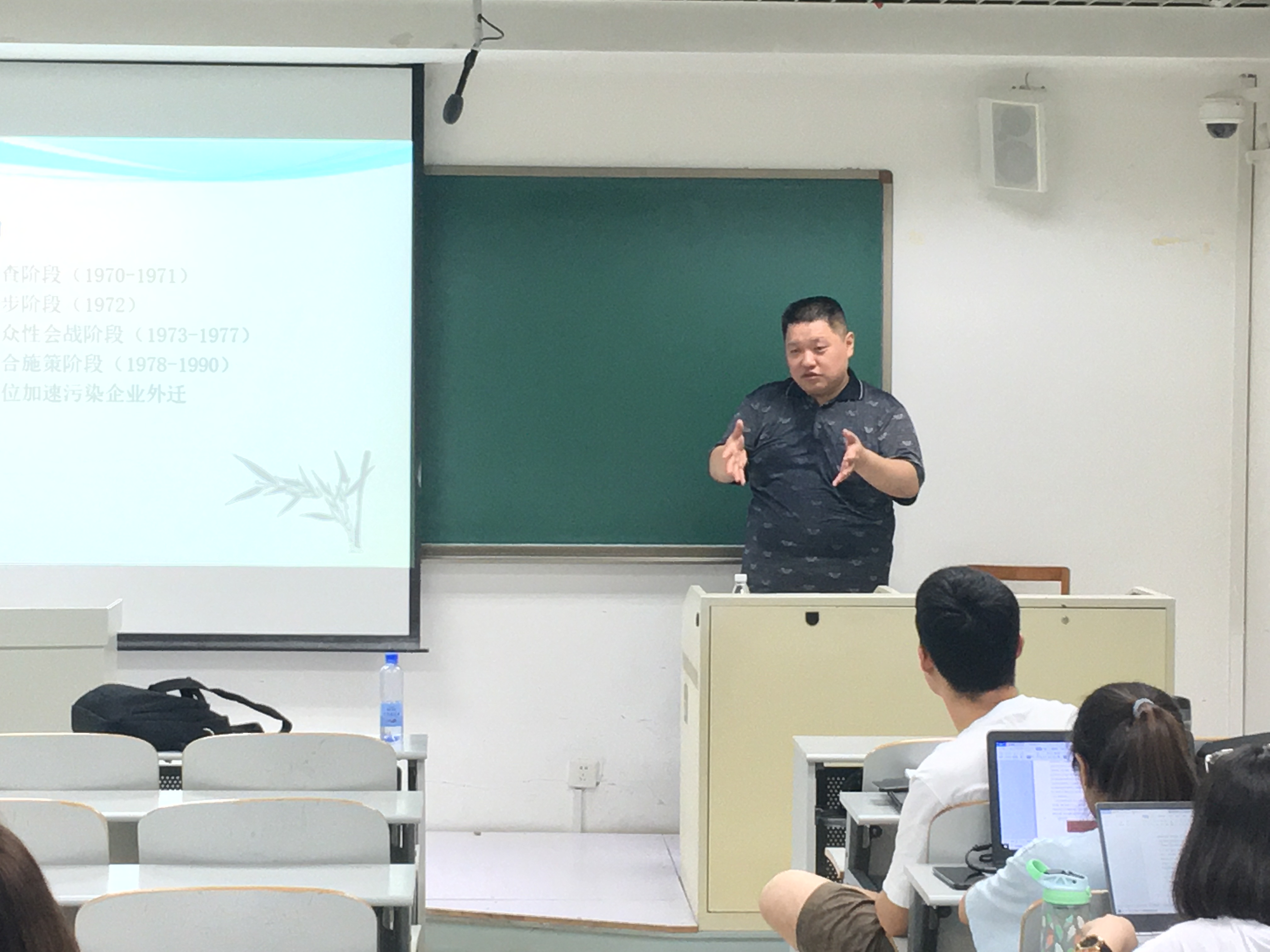 随后,讲座开始进入北京环境治理的相关话题,徐老师首先从国际局势变动的角度切入,提出冷战的爆发,国际国内局势发生重大变化,使得中国确立了大力发展重工业的方针,随之产生了许多的环境问题。1972年,国际局势的缓和,使得周恩来等国家领导人,认识到环境保护的重要性,从而推动北京空气污染治理的起步,并且逐渐形成“由点到面”,从“指标”到“治本”的空气污染治理体系,不过囿于国内技术和物质条件的限制,北京空气污染治理成效缓慢。但也形成了一套行之有效的技术处理手段,如“改变城市燃料结构”、“外迁污染企业”、“发展集中供热”等诸多措施,其中许多方法在今天的环境污染治理过程中仍有很强的借鉴意义。